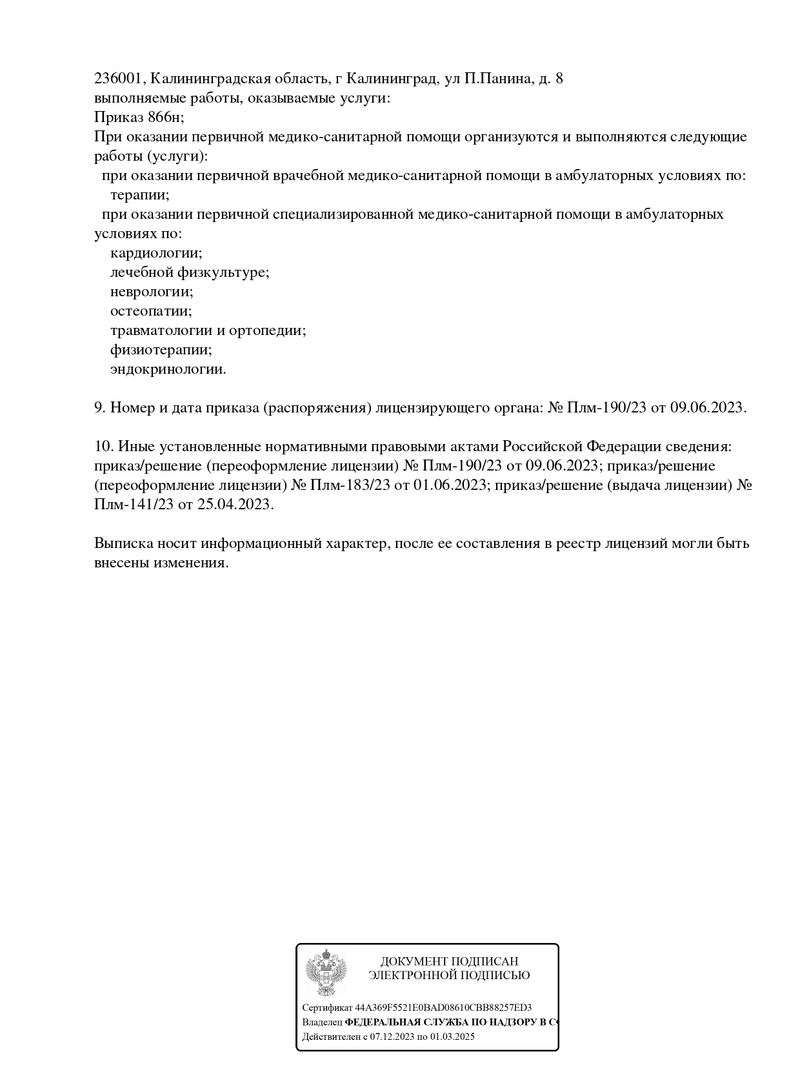 Диапазоны цен на приём врачей и специалистов, услуги и диагностику в центре неврологии и остеопатии профессора Рождественского в Калининграде.
