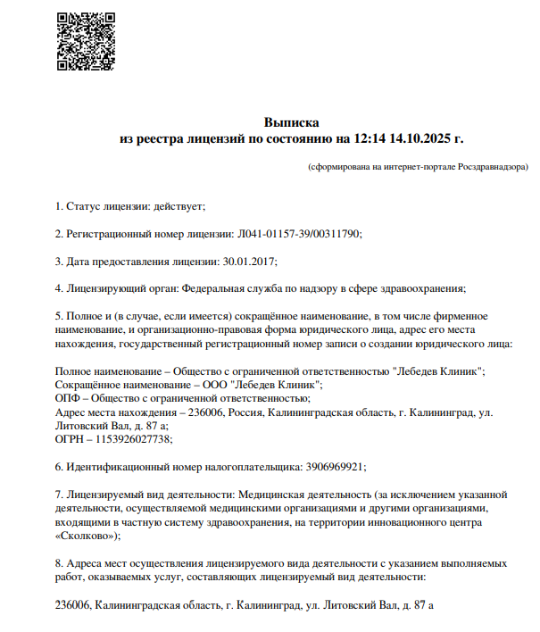Диапазоны цен на приём врачей и специалистов, услуги и диагностику в Стоматология L-clinic (Эль-клиник) в Калининграде.